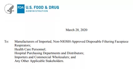 3月28日,在美國FDA新出臺的一次性呼吸器緊急使用授權(quán)(EUA)清單中,把中國KN95防護產(chǎn)品和GB2626-2006標準的產(chǎn)品都取消掉了。