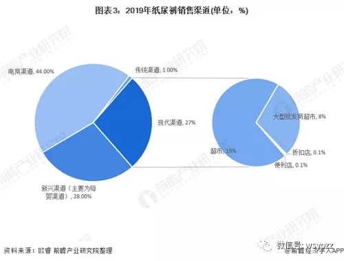 但是對于中國紙尿褲品牌,無論是市場層級提升或下沉,都需要在渠道中有符合自身發(fā)展的定位。隨著互聯網、5G、人工智能等技術的發(fā)展,電商渠道、新興渠道逐漸占據主要銷售渠道。據歐睿數據,2019年紙尿褲銷售渠道中,電商渠道占比44%;新興渠道主要為母嬰渠道占比28%。