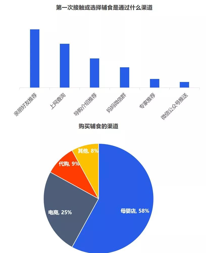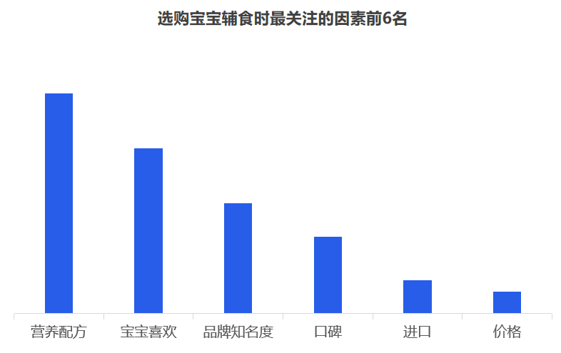 但是對于品牌而言,最重要的是洞察需求,一個好的洞察,一定是清晰揭示消費者的傾向,暗示了一個市場機會。究竟品牌入局輔食的機會有多大,媽媽們是如何看待輔食的? 從當前的嬰幼兒用品的采購情況來看,媽媽負責嬰幼兒用品的采購,用戶占比超七成。奶爸也會經(jīng)常協(xié)助寶媽,參與到嬰幼兒用品的采購活動中,用戶占比為41.7%。 從近一年的百度指數(shù)來看,目前關注輔食最突出的地域是廣州、浙江、江蘇、山東、北京等,可見,當前一二線城市的消費者對輔食的認知教育有所提高,但是低線城市的消費者對寶寶輔食的添加還不重視。 其次,從年齡段來看,“30-39歲”的消費人群對輔食的關注度最高,而在這其中,女性對輔食的關注度遠高于男性。 2019年母嬰行業(yè)觀察通過線上調研近10000人數(shù)的家長進行了輔食調查,其中80后占據(jù)24%,85后占據(jù)26%,90后44%,95后4%,對輔食的態(tài)度如下: 1、幾乎所有的媽媽都認為有必要給寶寶添加輔食,并且有一半的媽媽認為要在6個月時添加,而有32%的媽媽認為在6個月-1歲開始添加,還有16%的人在6個月以前就添加輔食。 2、大部分寶寶的輔食來源都是“購買與自制”相結合,而在購買輔食時,媽媽們購買最多的類型依舊是米粉,其次則是餅干、磨牙棒等小食品、營養(yǎng)面等。 3、互聯(lián)網(wǎng)與社交圈對媽媽的購買決策權的影響力較大,據(jù)調查顯示,媽媽們第一次接觸或選擇輔食大多都是通過親朋好友推薦,上網(wǎng)查詢等。當然消費者在購買嬰兒輔食的渠道選擇上,其實與奶粉并無不同,為了保證產品的質量和安全性,同時也為了可以得到育嬰專家的指導和幫助,消費者更傾向于在專業(yè)的母嬰用品連鎖店或主流電商平臺購買食品。 4、隨著85后、90后新生代父母的崛起,他們與父輩的消費觀念并不相同,不再執(zhí)著與于進口與價格等,而是開始關注是營養(yǎng)配方,重要的是寶寶喜歡。 5、對于寶寶而言,自添加輔食開始,都是與奶粉喂養(yǎng)相結合,目前超一半的寶寶每天食用輔食的頻率都是一天兩頓。當然這在一定程度上也決定了每個月在寶寶的輔食上的花費是多少,從月消費來看,可以明顯看出200以內的將近半數(shù),當然也可以看出花費在300以上的有21%,可見,對于嬰兒食品這個特殊的品類,以及嬰幼兒這個特殊的消費人群,消費持續(xù)升級仍然明顯。近兩年來,嬰幼兒輔食高端化、有機化趨勢明顯。 近幾年來,越來越多的媽媽意識到輔食的重要性,隨著我國居民可支配的收入不斷提高,消費者投入了更多的關注給自己的孩子,作為寶寶的第二餐,消費者愿意投入更多費用,使用周期會不斷變長,且更注重輔食產品的品質和質量。可見隨著消費水平的提升,年輕父母對于對孩子的飲食質量、飲食營養(yǎng)的投入更加重視,會更追求高附加值、高品質的輔食,中國輔食市場會繼續(xù)高速發(fā)展。